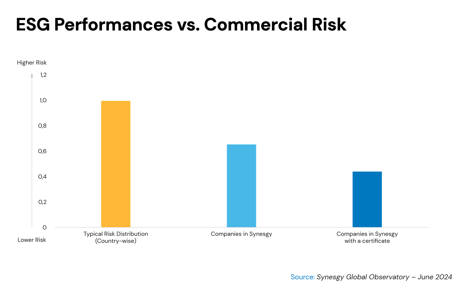 According to Synesgy data, businesses with higher ESG scores showed a 50% lower commercial risk compared to industry averages, establishing themselves as more reliable and attractive partners—an essential advantage in both selecting and being selected as a commercial partner.